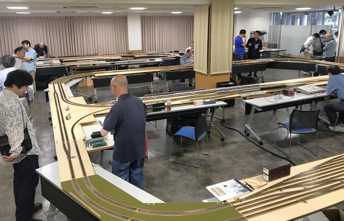 大レイアウトは,小菅一己さんのもの(過去記事).走行音はコルク道床の恩恵で静粛そのもの.